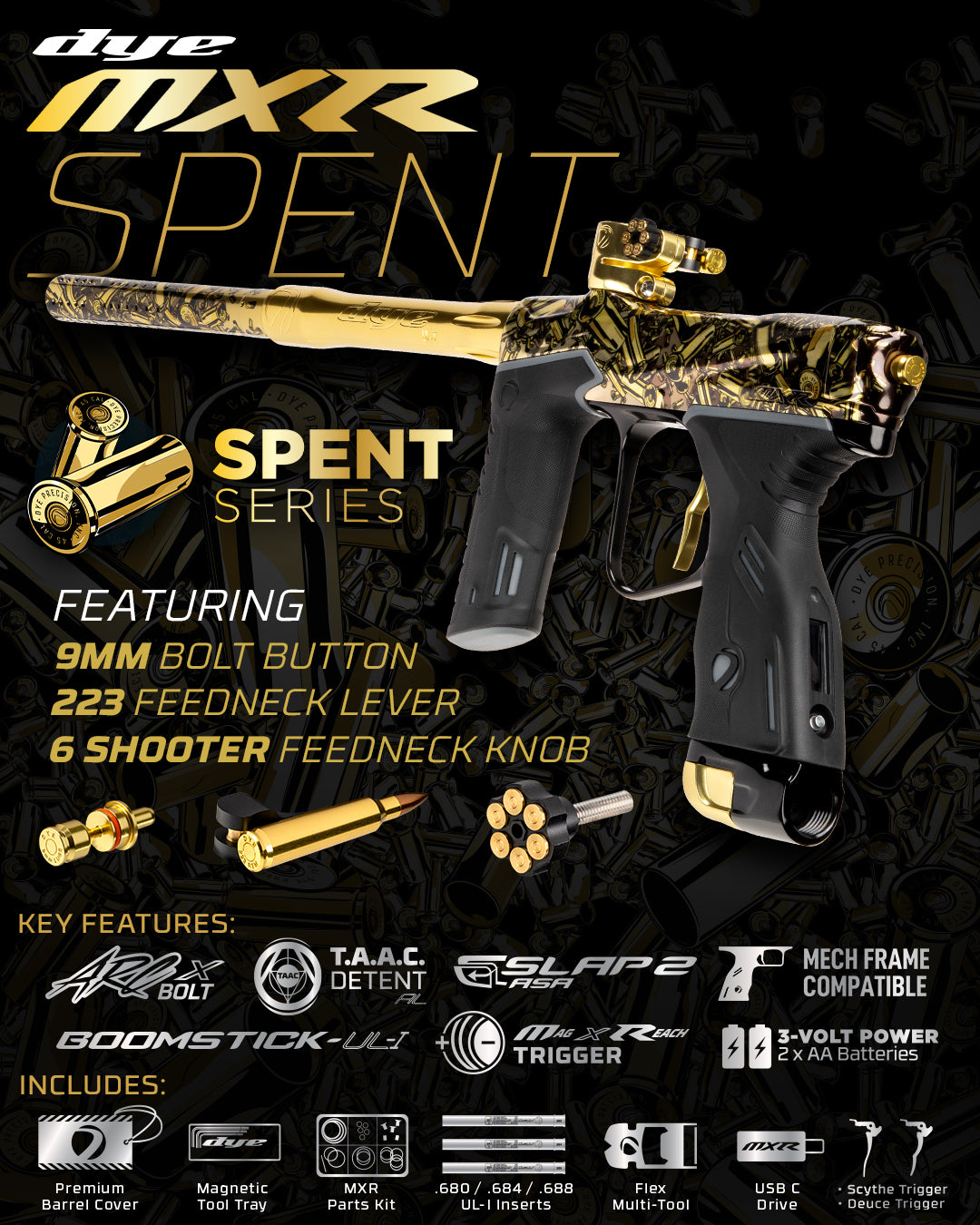 The DYE MXR represents over two decades of relentless innovation, combining the best of our championship-winning technology with cutting-edge advancements to deliver a marker that stands in a league of its own. Designed for both the seasoned pro and the avid player, the MXR is engineered to dominate any field, providing unmatched performance, precision, and reliability.